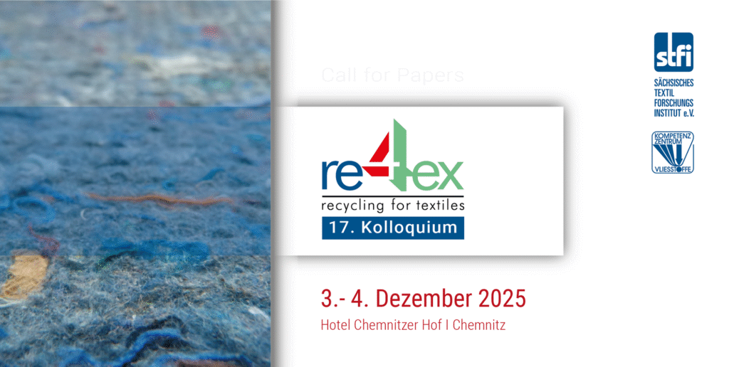 Das 17. Kolloquium „recycling for textiles“ findet am 3. und 4. Dezember 2025 im Hotel Chemnitzer Hof in Chemnitz statt.