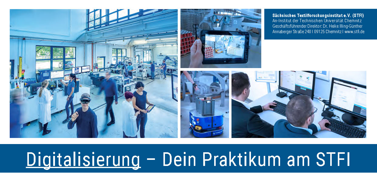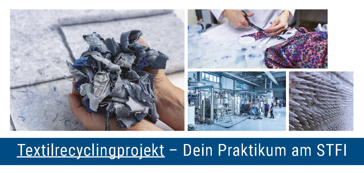 Ein freiwilliges Praktikum ist eine gute Gelegenheit, um einen Beruf kennen zu lernen, bevor man die Wahl des Berufsfeldes trifft. Das STFI bietet drei Praktika an, die hierbei helfen. Das Rucksackprojekt gibt einen Überblick über die textile Produktion. Das Digitalisierungspraktikum liefert Einblick in bis zu fünf Teilgebiete rund um Daten, Automatisierung und Visualisierung. Das Recyclingparktikum vermittelt die textile Kreislaufwirtschaft und zeigt, warum die Qualität von Textilien eben doch eine große Rolle spielt. Darüber hinaus kann man eine Anfrage hinsichtlich eines individuell gestalteten Praktikums an uns senden.