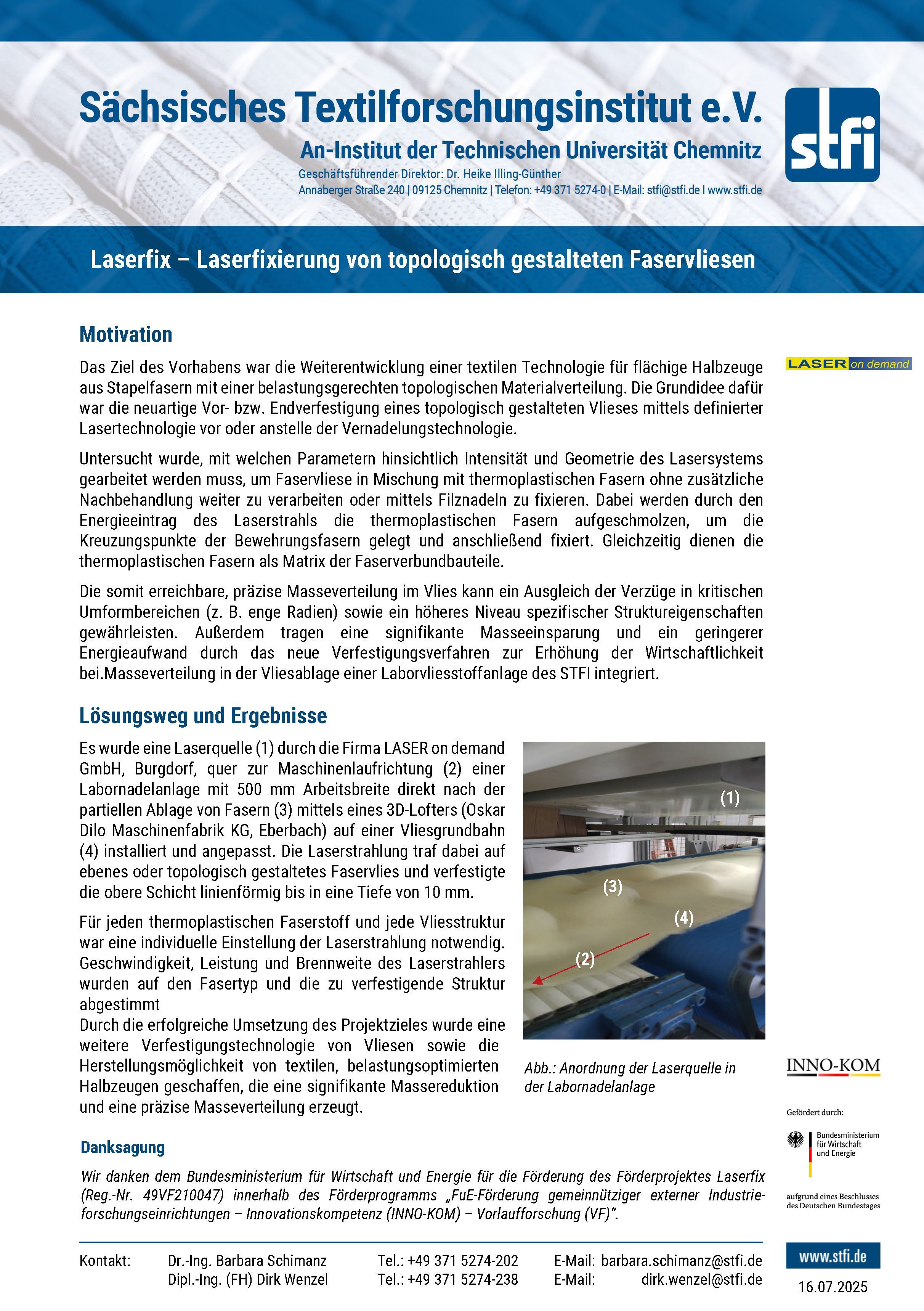 Laserfix – Laserfixierung von topologisch gestalteten Faservliesen