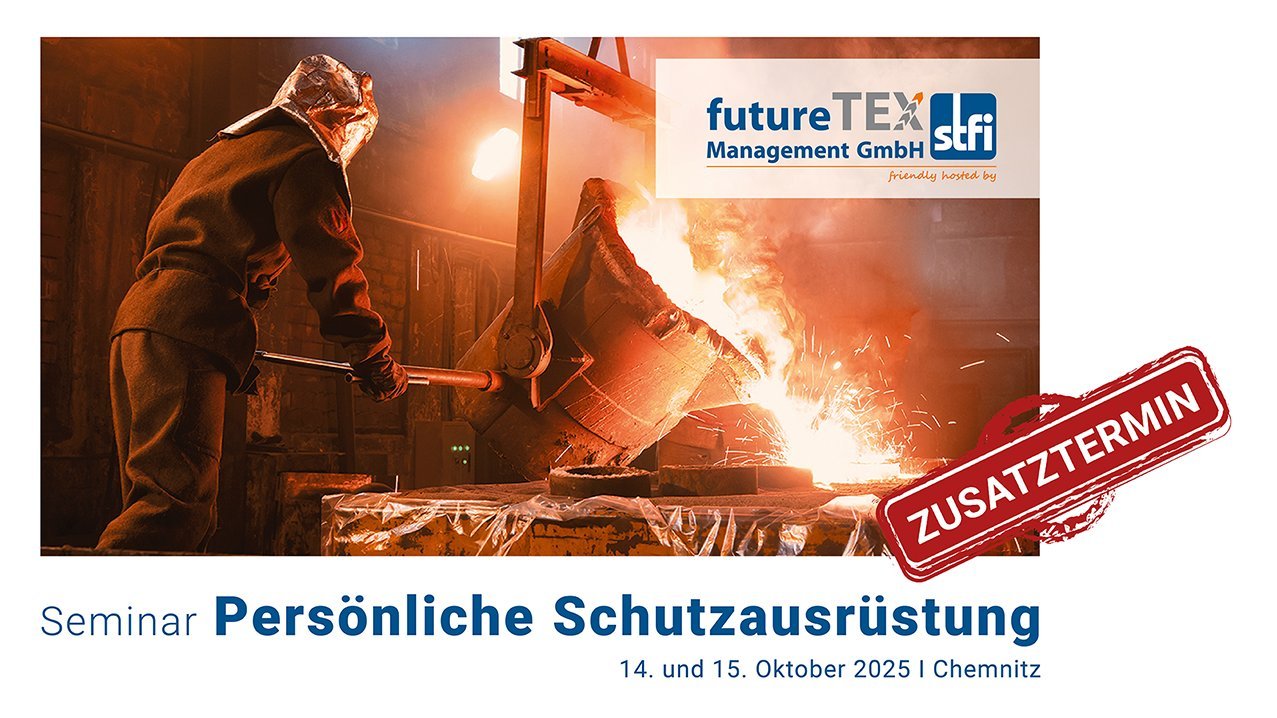 08.10.2025 - 09.10.2025Ort: ChemnitzSeminare/WorkshopsDas Weiterbildungsseminar für die vliesstoffherstellende bzw. -verarbeitende Industrie, den Textilmaschinenbau sowie andere interessierte Unternehmen findet auch im Herbst 2025 am STFI statt. Thematisch gibt das Seminar einen Überblick über das Fachgebiet der Vliesstoffe.