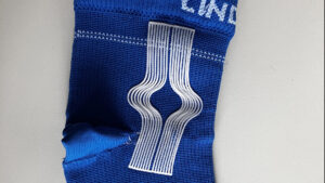 Unterstützung für das Sprunggelenk durch dehnungsversteifenden Strukturen in Bandagen, die die Beweglichkeit wenig einschränken.