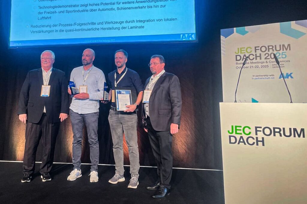 Frankfurt/Dresden – Die Gewinner des renommierten AVK-Innovationspreises für Faserverbundkunststoffe wurden in diesem Jahr am 21. Oktober 2025 im Rahmen des JEC Forum DACH in Dresden ausgezeichnet. Der Preis würdigt Unternehmen, Institute und deren Partner in den Kategorien „Produkte und Anwendungen“, „Prozesse und Verfahren“ sowie „Forschung und Wissenschaft“ für herausragende Innovationen im Bereich Composites. Eine Fachjury aus Ingenieuren, Wissenschaftlern und Fachjournalisten bewertet die Einreichungen anhand von Kriterien wie Innovationshöhe, Realisierungsgrad und Nachhaltigkeit.