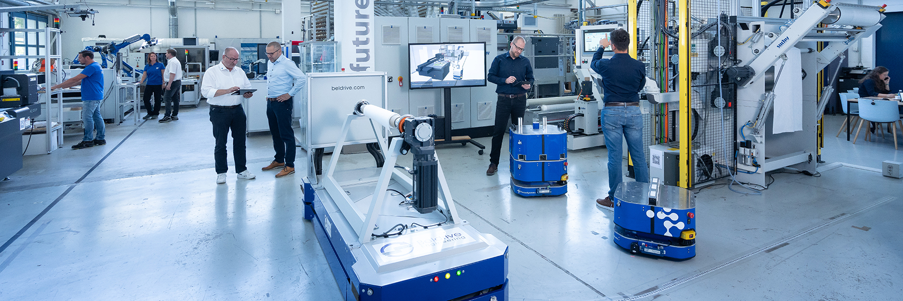 Digitisation across the entire textile value chain has become increasingly important in the textile industry in recent years. For both small and large companies, digital business and production processes are increasingly an integral part of corporate strategy and are essential for their future viability and competitiveness. The research and testing facility focusing on digitised, automated and networked production processes serves as a research and testing environment for both companies and staff at STFI.
