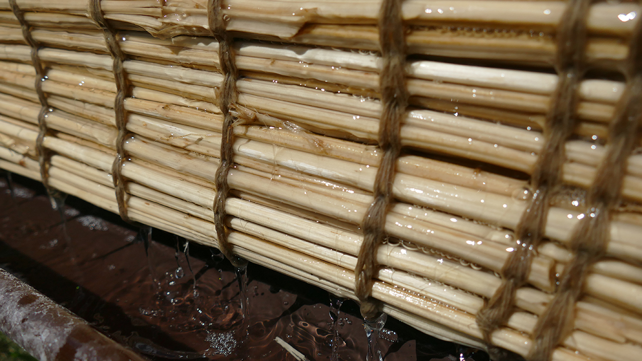 Genutztes Wasser, vorzugsweise unmittelbar am Ort des Anfalls zu reinigen und zur gefahrlosen Wiederverwendung bereitzustellen, spielt nicht nur in dicht besiedelten Städten zunehmend eine wesentliche Rolle. In Kooperation mit Industriepartnern haben Forscher des STFI einen Dachbiofilter konzipiert und im Prototyp umgesetzt, der sowohl Regenwasserretention nutzt als auch eine Grauwasserreinigung leistet. Der Dachbiofilter sieht die Rückführung von Grauwasser vor, um dieses einer weitergehenden Reinigung zu unterziehen, durch Evapotranspiration kleinräumige Wasserkreisläufe zu etablieren und bewässerte Gründächer von einer nicht permanenten Wasserversorgung durch Regen- oder Trinkwasser unabhängig zu machen. Das aufbereitete Wasser dient letztlich der Bewässerung. Abgesehen von Regenereignissen erweist sich Grauwasser für den Grundlastbetrieb vorteilhaft. So wird es möglich, Wasser im Wohnquartier weitgehend losgelöst von klimatischen Bedingungen zu reinigen und zu nutzen. Die Reduktion von abzuleitendem Wasser beträgt bis zu 90 %. Der Wasserspeicherraum (> 10 L/m²) wird durch neuartige biobasierte Materialien konstruiert. Bei diesem Dachbiofilter solllen üblicherweise eingesetzte Sumpfpflanzen durch gewirkte Strukturen auf Spinnvliesbasis ersetzt werden, die hinsichtlich kapillaren Wassertransports und Evaporation dem bepflanzten Vorbild gleichen. Stadtquartiere können so wesentlich ressourceneffizienter gestaltet werden.