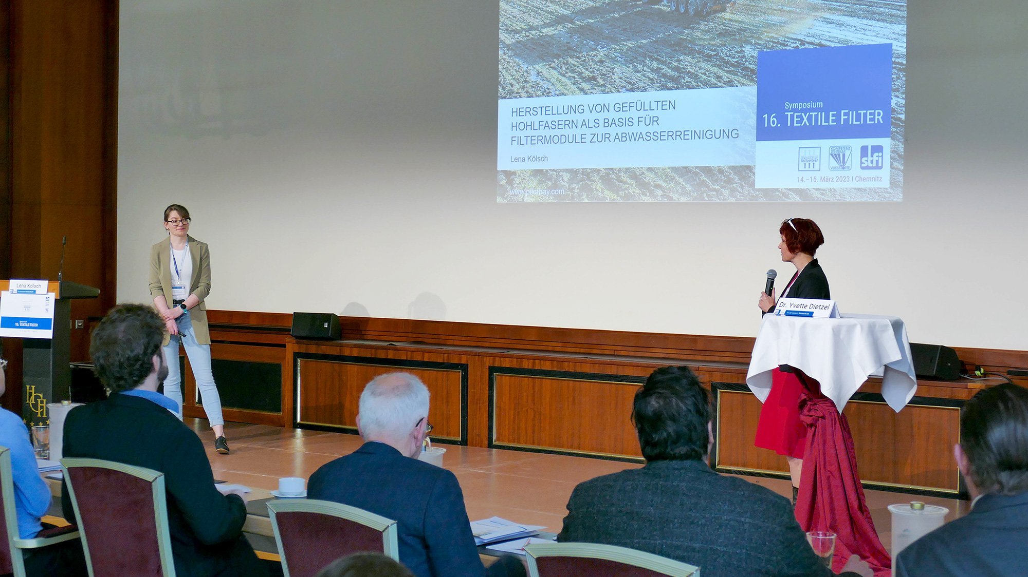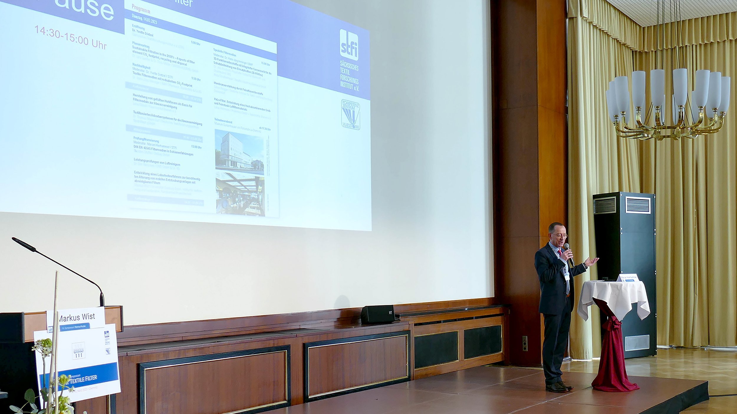 Das 16. Symposium Textile Filter des Sächsischen Textilforschungsinstituts e.V. (STFI) fand am 14. und 15. März 2023 im Hotel Chemnitzer Hof, Chemnitz, statt. Mussten vor drei Jahren wegen erster coronabedingter Reisebeschränkungen noch einige Vorträge über Videokonferenz gehalten werden, konnten in diesem Jahr alle 99 Teilnehmer in Präsenz vor Ort sein. Im Rahmen des Symposiums wurden insgesamt 18 Vorträge und vier Pitch-Vorträge gehalten. Parallel wurde das Symposium von einer Fachausstellung begleitet, in der zehn Aussteller ihre Produkte und Services zeigten.