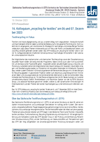 … werden. Das 16. STFI-Kolloquium „recycling for textiles“ findet am 6. und 7. Dezember 2023 im Hotel Chemnitzer Hof in Chemnitz (Präsenz) statt. Die Anmeldung zum Kolloquium erfolgt online unter…