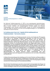 …sbildung zum Produktionsmechaniker Vliesstoffe (m/w/d) 22.04.2025 Sächsisches Textilforschungsinstitut e.V., Chemnitz www.stfi.de Das Sächsische Textilforschungsinstitut e.V. (STFI) ist eine anwendungsnahe…
