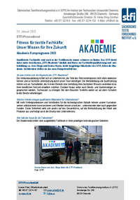 … Sächsische Textilforschungsinstitut e.V. (STFI) lädt Interessierte am 23. August 2023 nach Chemnitz für einen offenen Austausch rund um die Themen Fachkräftequalifizierung und nachhaltige Innovationen…