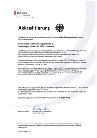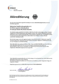 … dass die Zertifizierungsstelle Sächsisches Textilforschungsinstitut e.V. Annaberger Straße 240, 09125 Chemnitz die Mindestanforderungen gemäß DIN EN ISO/IEC 17065:2013 für die in der Anlage zu dieser Urkunde…