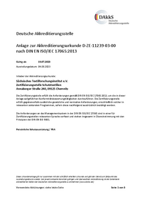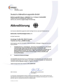 … Sächsisches Textilforschungsinstitut e. V. mit dem Standorten Annaberger Straße 240, 09125 Chemnitz Friedrich-List-Platz 1, 01069 Dresden die Kompetenz nach DIN EN ISCVIEC 17025:2018 besitzt,…