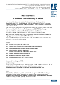 … sich die beiden Forschungseinrichtungen "Forschungsinstitut für Textiltechnologie GmbH (FIFT)" in Chemnitz und das "Institut für Technische Textilien GmbH (ITT)" in Dresden zusammen und gründeten das…